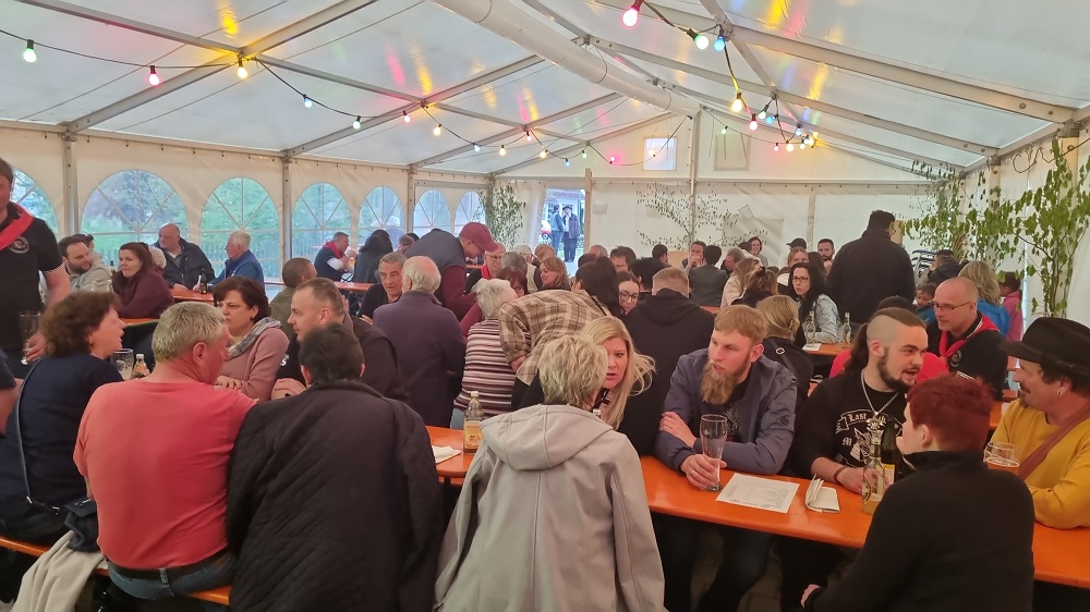 Nachdem der prächtig geschnitzte und verzierte Maibaum durch unsere Stumpenmacher gestellt wurde, heißt es bei Zeltbetrieb im Schlossgarten "It´s Party-time"